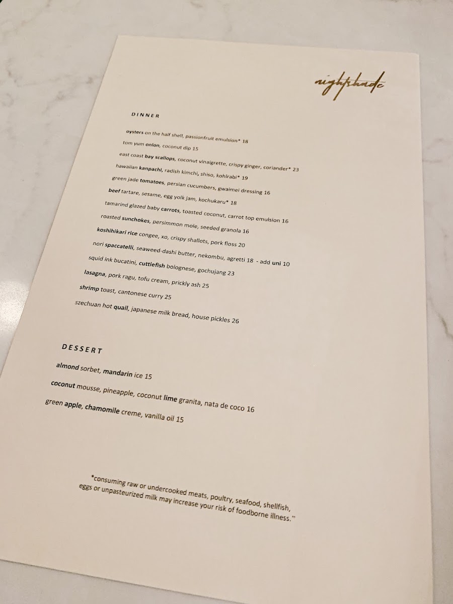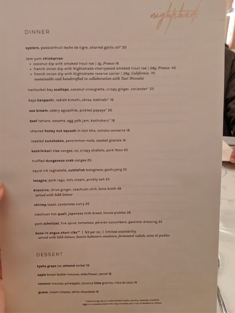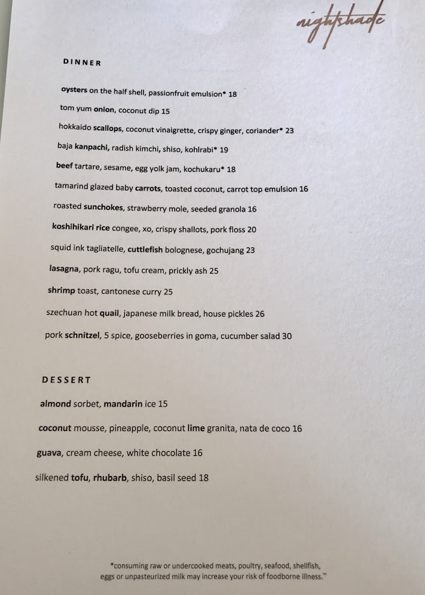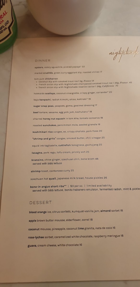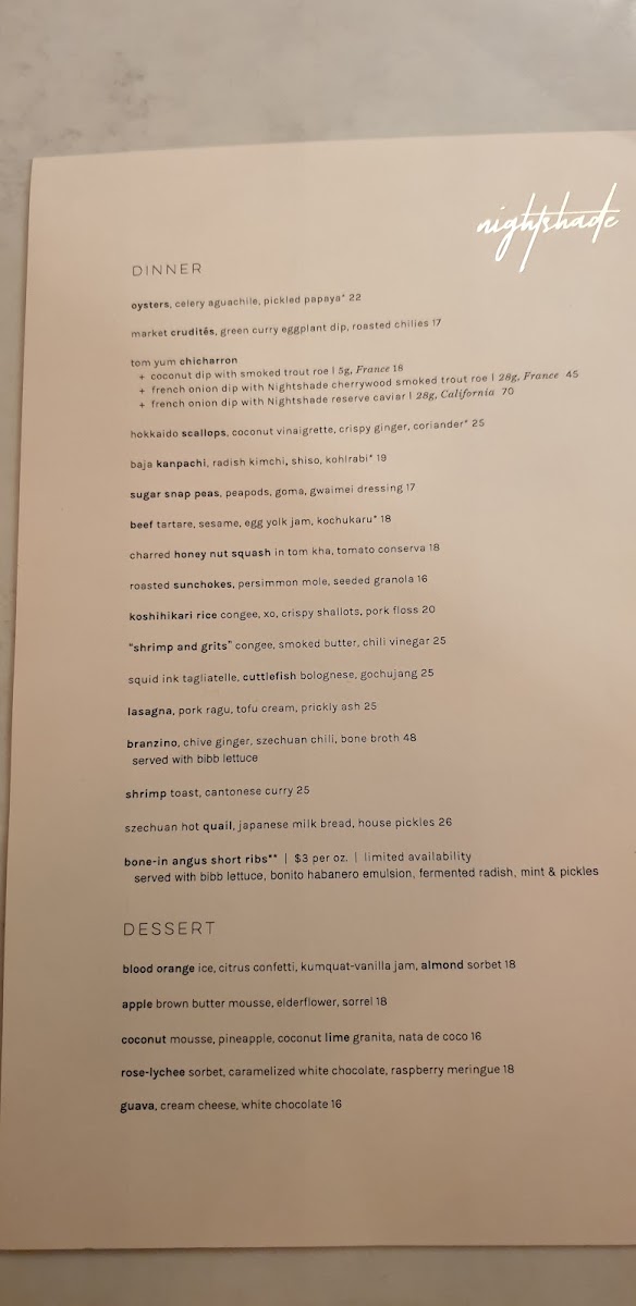 Welcome to Nightshade, a culinary gem nestled in the vibrant heart of Los Angeles at 923 E 3rd St #109. This exceptional restaurant is a celebration of modern dishes infused with rich Asian flavors, offering an experience that is as visually stunning as it is delicious.