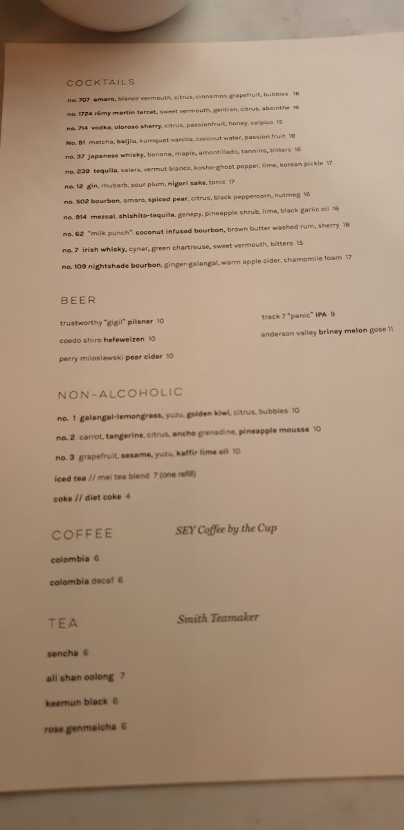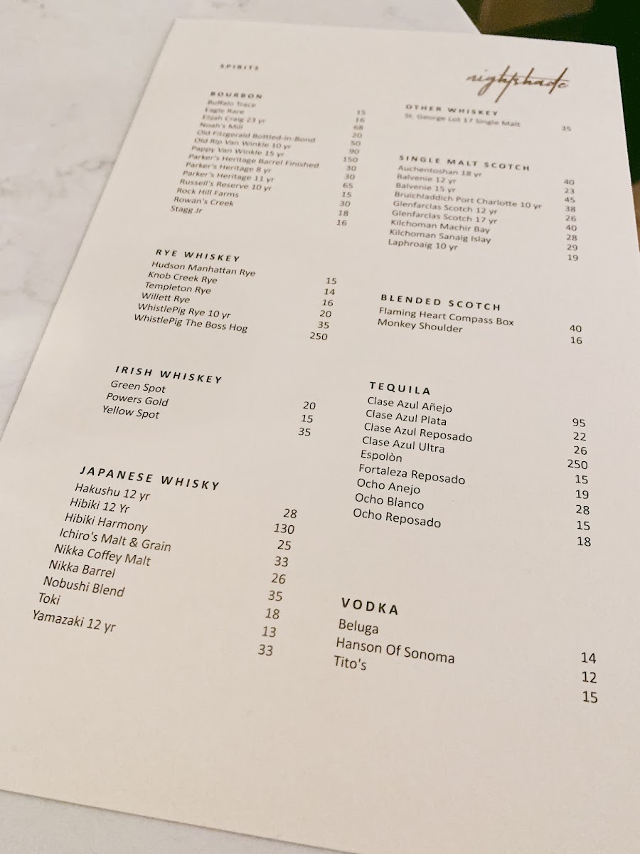 Drinks at Nightshade are equally impressive, boasting a well-crafted cocktail menu that includes options like the tantalizing Tequila with Ghost Pepper and Amaro drinks, expertly mixed to enhance your dining experience. For a non-alcoholic treat, indulge in the refreshing Galangal Lemongrass drink, bursting with zesty flavors.